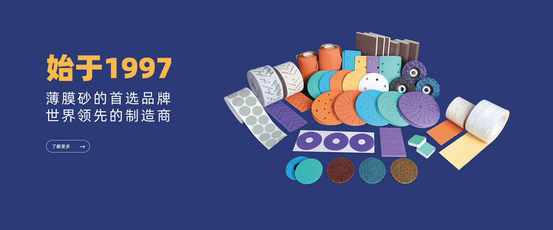 成立于1997年,是中國首批從事涂附磨具產品貿易的實體企業,2001年,公司正式完成從貿易商向生產制造企業的戰略轉型。目前,公司生產和銷售多種涂附磨具產品,被廣泛應用于交通工具涂裝、精細研磨;家具家裝和木工打磨、工業研磨等眾多領域。能夠完成從原材料研發,生產以及成品深加工的全流程自主生產體系,并支持差異化產品定制,按需提供解決方案。